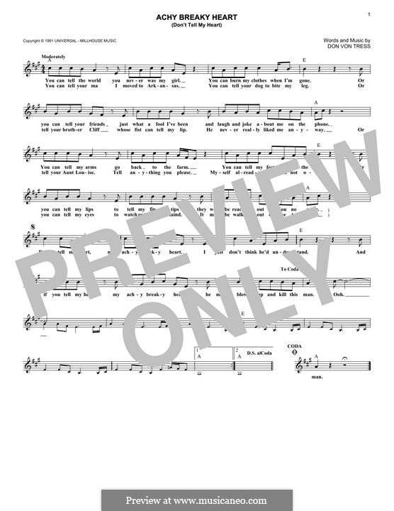 Achy Breaky Heart Don T Tell My Heart By D V Tress On Musicaneo